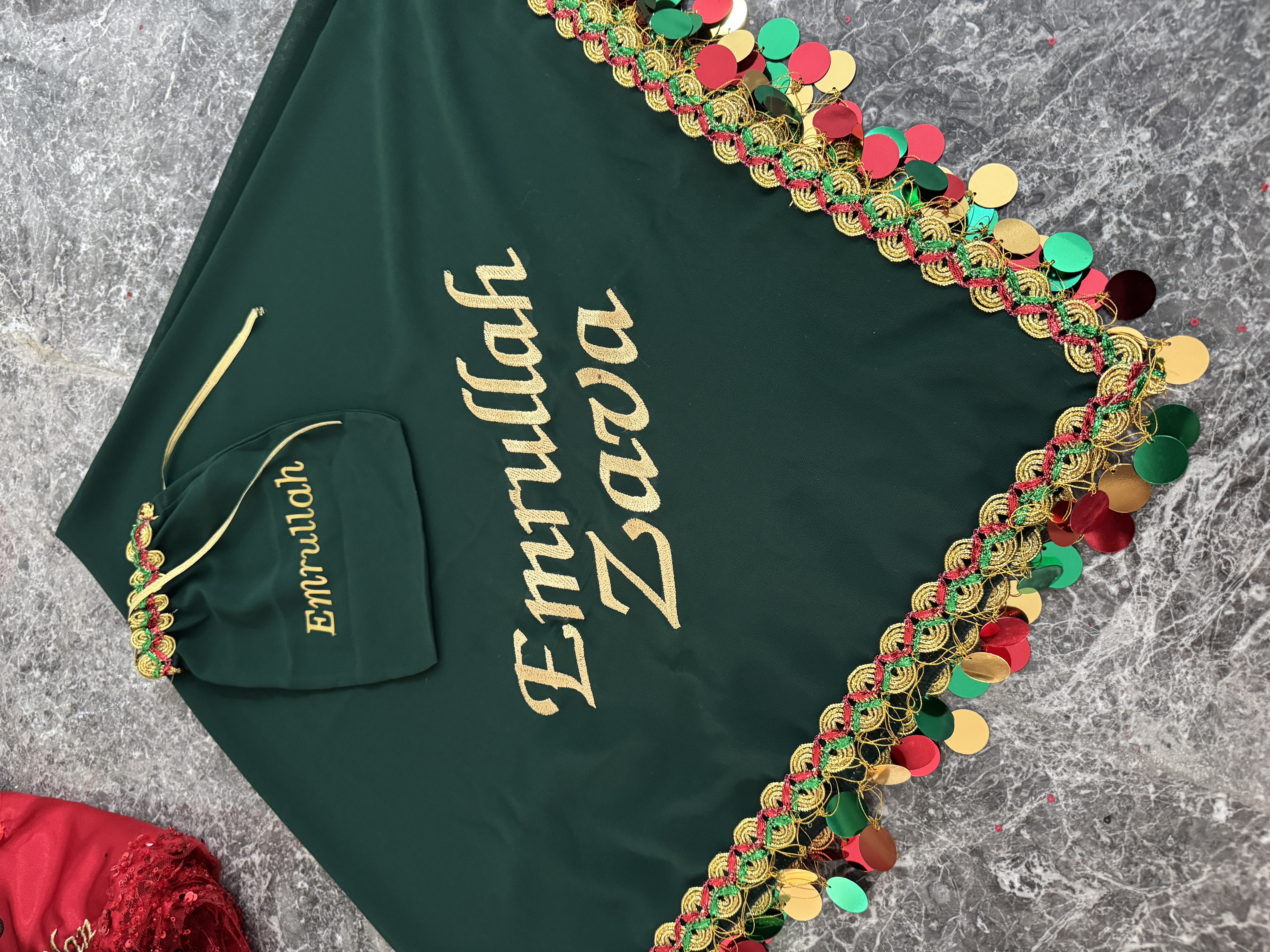 Üzerine istenilen yazı nakış ile yapılmaktadır.